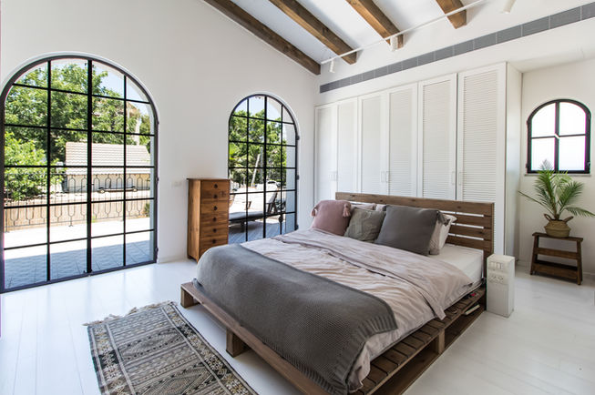At the heart of the home, the expansive kitchen, dining, and living areas fluidly connect to the exterior garden, fostering a sense of openness and community. The design vocabulary includes a white concrete floor, a site-built earthen-plaster kitchen, and exposed wooden beams in the ceilings, creating a tranquil and relaxed environment that welcomes family and friends for everyday activities.
